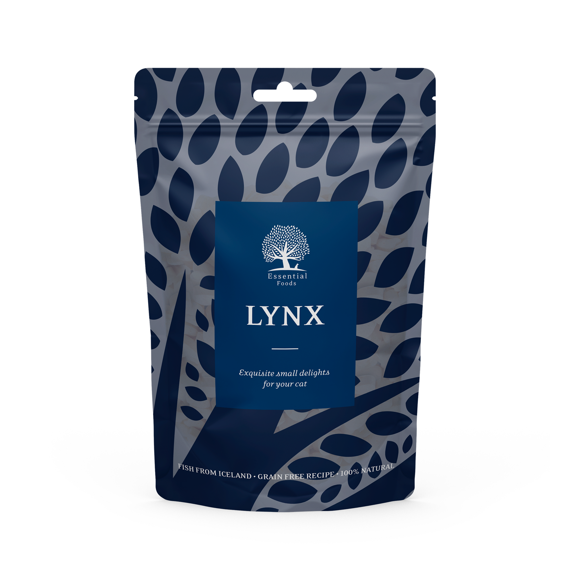 ESSENTIAL THE LYNX Această combinație strălucită de cod și eglefin este interpretarea Essential Foods a unui deliciu mic și rafinat. Un OMAGIU ESENȚIAL adus pisicilor. Complet naturală și provenind direct din Islanda, LYNX este totul și mai mult, împachetat într-o singură bucățică. Și îți dai seama că este autentică imediat ce simți mirosul – este TOT pește! Ideală atât pentru pisici adulte, cât și pentru pisicuțe, și îi înnebunește chiar și pe câini.