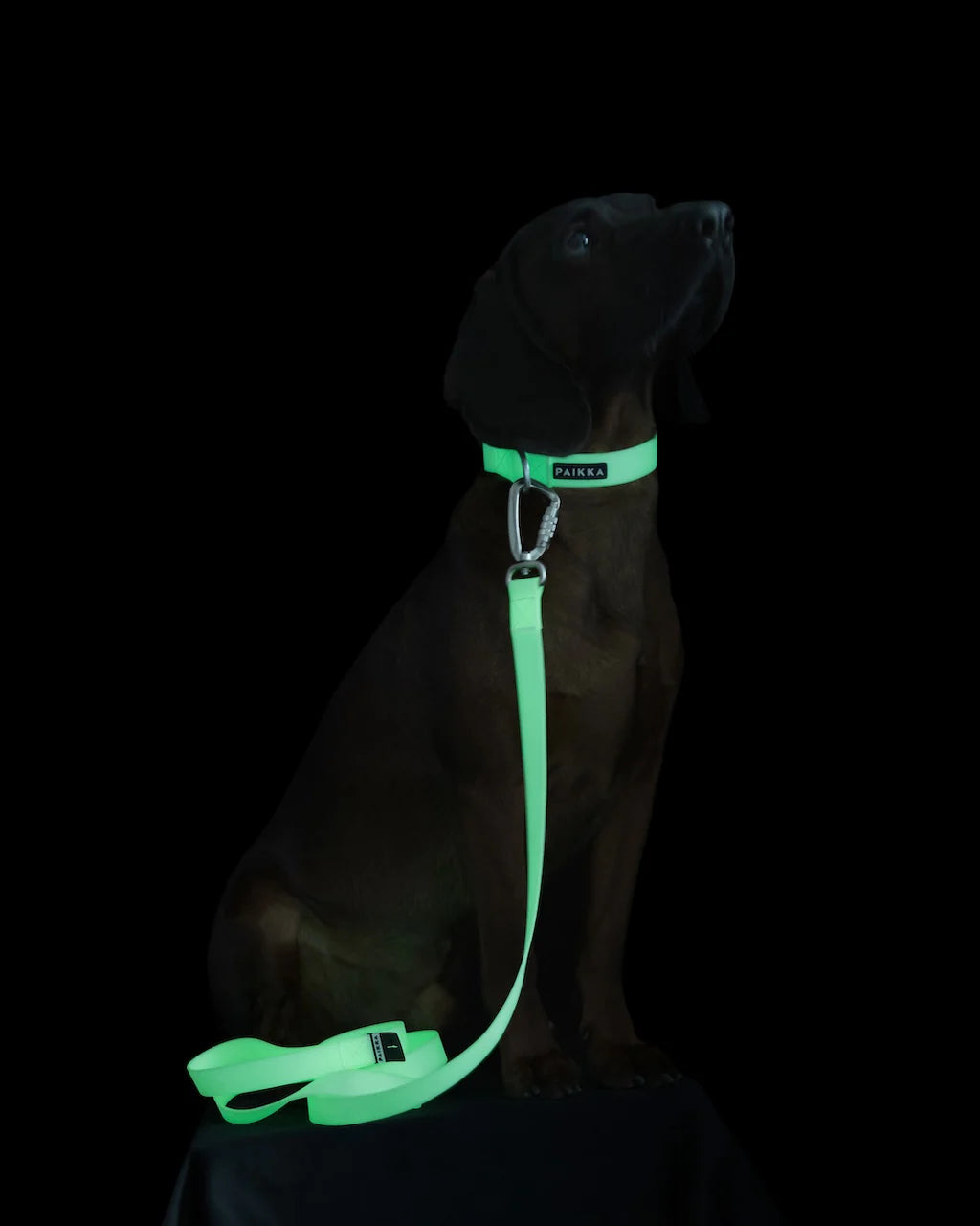Realizată din material fluorescent, această lesă absoarbe lumina și strălucește intens în întuneric, asigurând vizibilitate în condiții de lumină scăzută. Lesa PAIKKA Glow nu este doar spectaculoasă din punct de vedere vizual, ci este concepută și pentru a oferi funcționalitate și durabilitate.