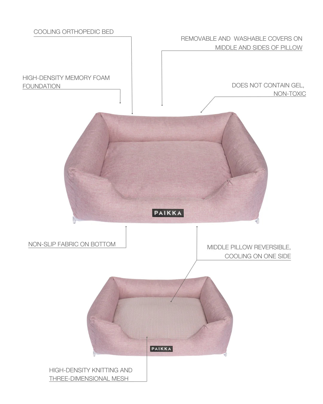 Oferă-i câinelui tău confort pe tot parcursul anului cu patul ortopedic PAIKKA. În centrul său se află spuma memory ortopedică premium, care susține articulațiile, reduce presiunea și ajută câinele să se odihnească profund. Perna reversibilă are o față cu efect de răcorire pentru zilele calde și o față moale, fără efect de răcire, pentru anotimpurile mai reci – totul într-un singur pat, conceput pentru confort indiferent de vreme.
